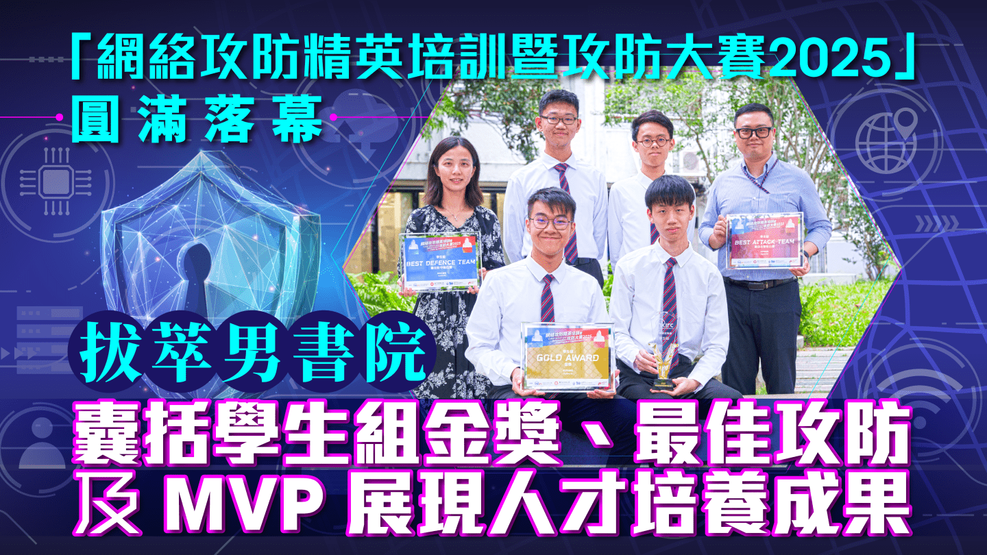 「網絡攻防精英培訓暨攻防大賽2025」圓滿落幕 拔萃男書院囊括學生組金獎、最佳攻防及MVP 展現人才培養成果 報導來源 標題 連結 星島頭條 「網絡攻防精英培訓暨攻防大賽2025」圓滿落幕 拔萃男書院囊括學生組金獎、最佳攻防及MVP 展現人才培養成果 按此閱讀